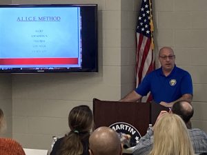 The second class of the 31st Session of the Martin Citizens Police academy met to discuss the topics of Use of Force and the School Resource Program. Assistant Chief Phillip Fuqua (Near Right) taught the class on Use of Force and provided some statistics relevant to the Martin Police Department. SRO Jimmy Brown (Far Right) and SRO Rachel Green taught the class on the School Resource Officer program and explained the daily activities, as well as the advantages to having SRO’s present in schools.