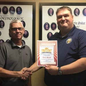 Congratulations to our own Patrol Captain Eric Reed Voted as the 2017 Best Law Enforcement Officer in Weakley County!!!